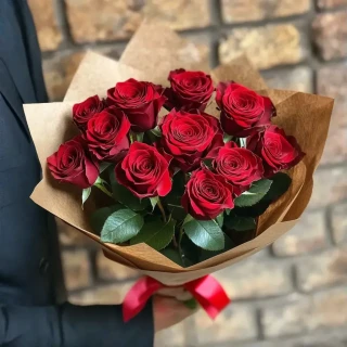 Этот нежный букет из 11 красных роз — воплощение истинной романтики и страсти. Каждая роза, с её бархатистыми лепестками и насыщенным цветом, символизирует глубокие чувства и искреннюю любовь. Их элегантные стебли аккуратно собраны в гармоничную композицию, создавая ощущение легкости и утонченности.