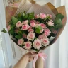 Этот утонченный букет окутывает сердце нежностью и любовью. Каждая розовая роза, оттененная теплом, передаст вам свои притягательные чары, заставляя забыть о суете и погрузиться в мир чувств. Приглушенная крафтовая упаковка придает букету естественный шарм, а узелок из зеленой декоративной листвы добавляет свежести и озаряет цветочную композицию. Демонстрируя нежность и утонченность, этот букет станет олицетворением вашей заботы и привлечет внимание своей простотой и красотой.